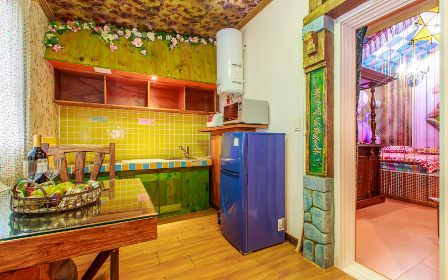 침대, 냉장고, 싱크대, 전기인덕션, 전자레인지, 전기밥솥, 냉온수기, 식기세트, 식탁, 벽걸이TV, 에어컨, 드라이기, 세면용품, 수건