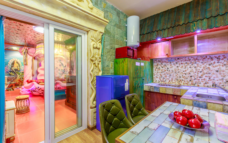 침대, 냉장고, 싱크대, 전기인덕션, 전자레인지, 전기밥솥, 냉온수기, 식기세트, 식탁, 벽걸이TV, 에어컨, 드라이기, 세면용품, 수건