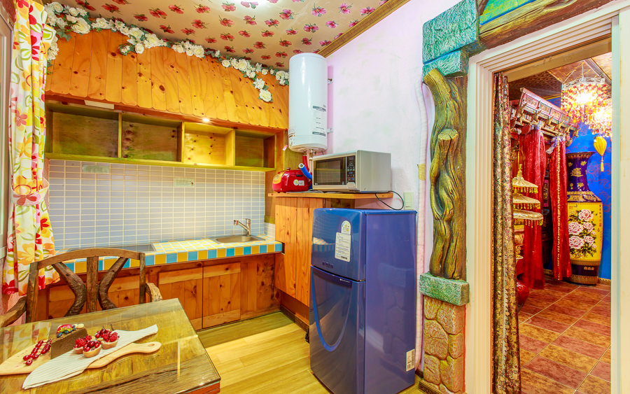 침대, 냉장고, 싱크대, 전기인덕션, 전자레인지, 전기밥솥, 냉온수기, 식기세트, 식탁, 벽걸이TV, 에어컨, 드라이기, 세면용품, 수건
