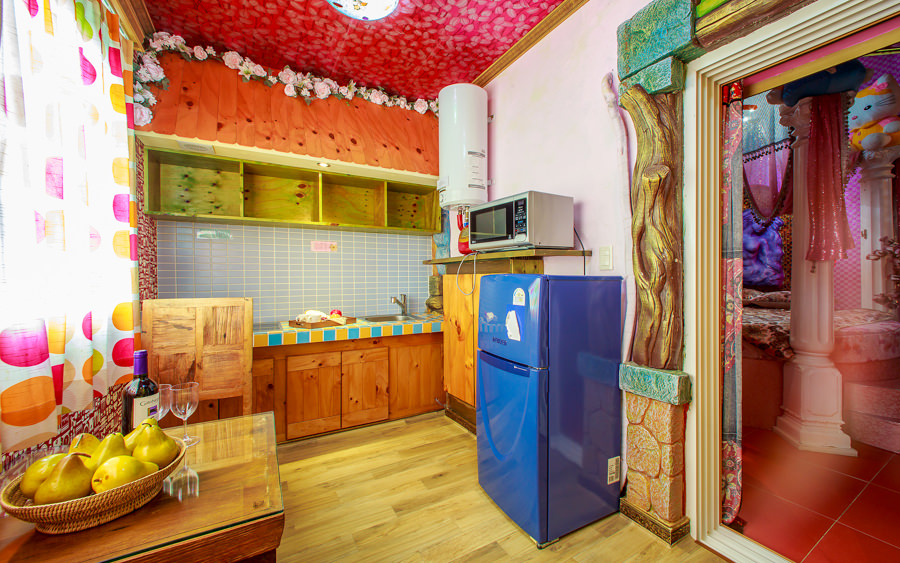 침대, 냉장고, 싱크대, 전기인덕션, 전자레인지, 전기밥솥, 냉온수기, 식기세트, 식탁, 벽걸이TV, 에어컨, 드라이기, 세면용품, 수건